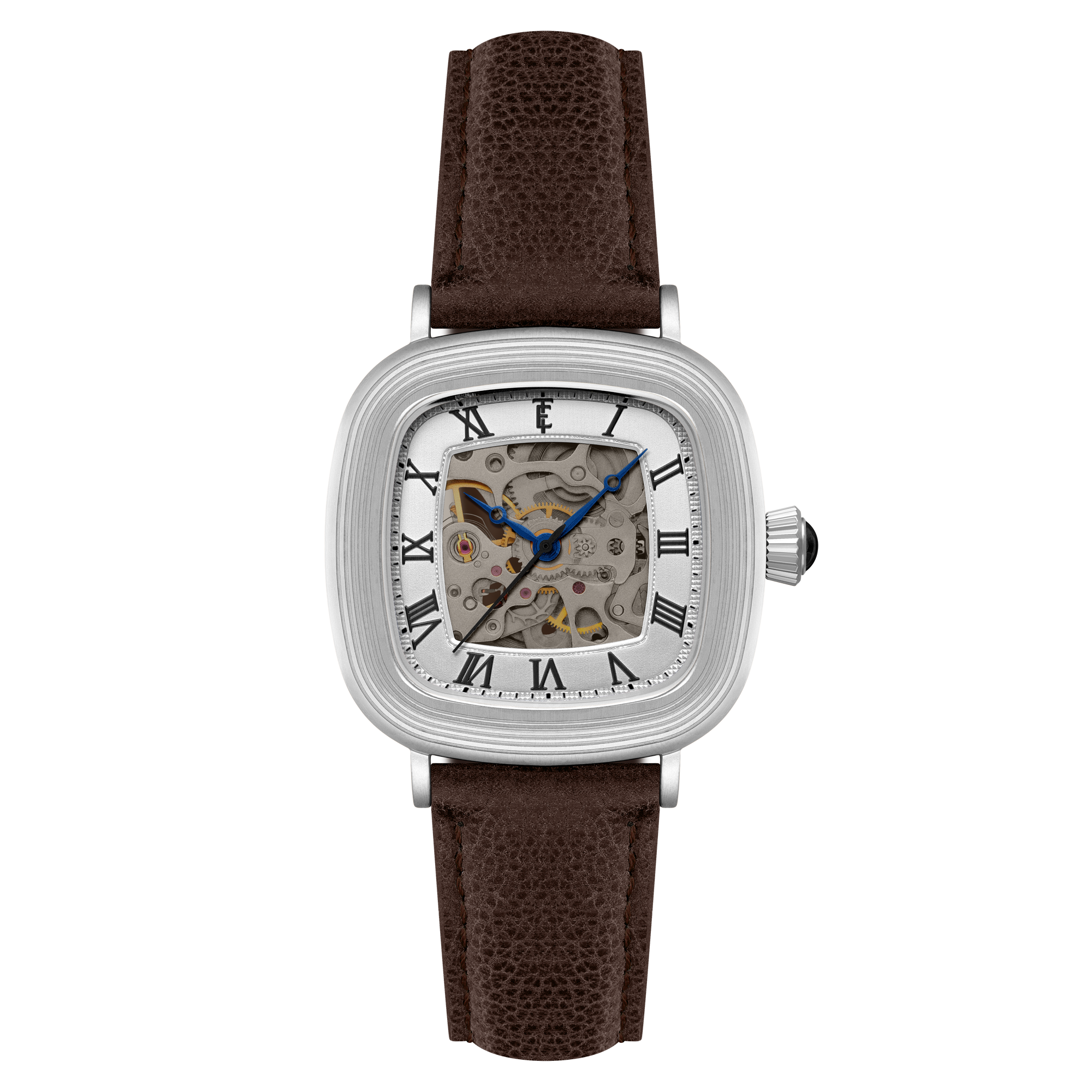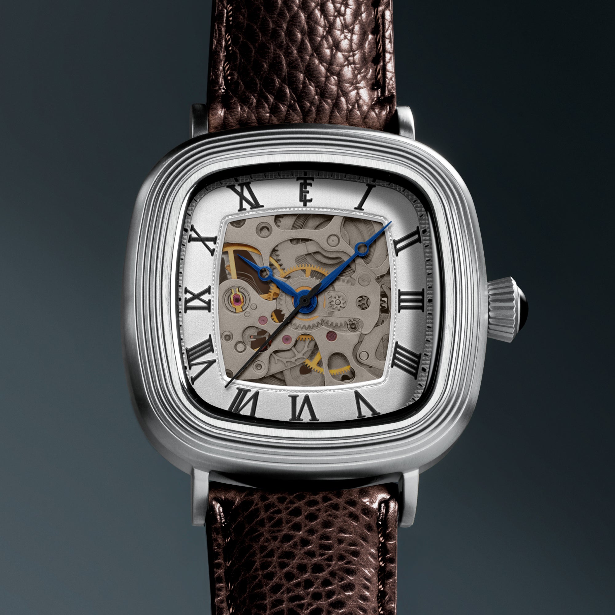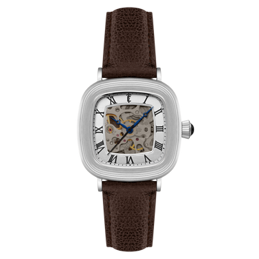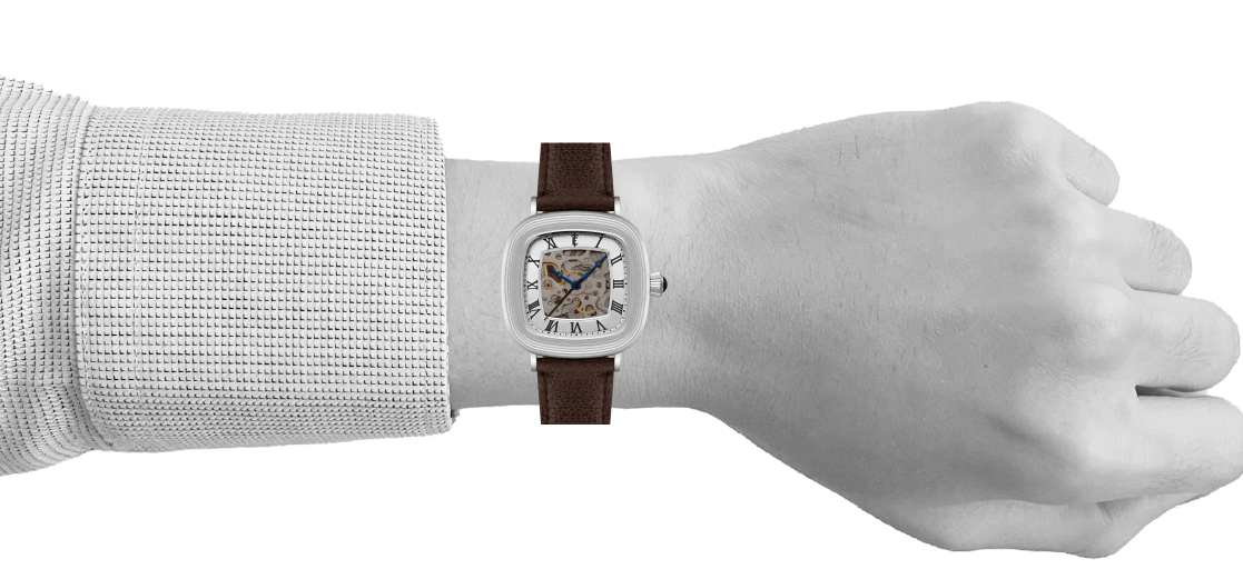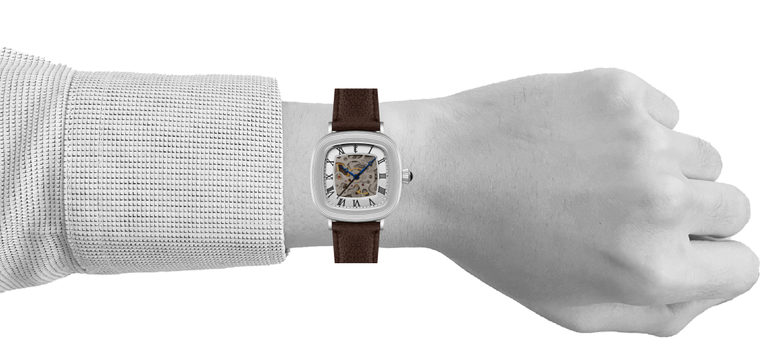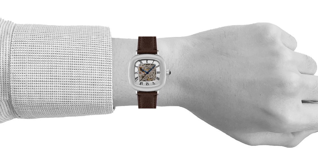 With its compact 38mm square case, the Chester is designed for balance. The timepiece also reveals its mechanical heartbeat with its skeleton dial and see-through exhibition caseback. Effortlessly refined for both everyday wear and formal elegance, the Chester brings sophistication and character together in one clean, square form.