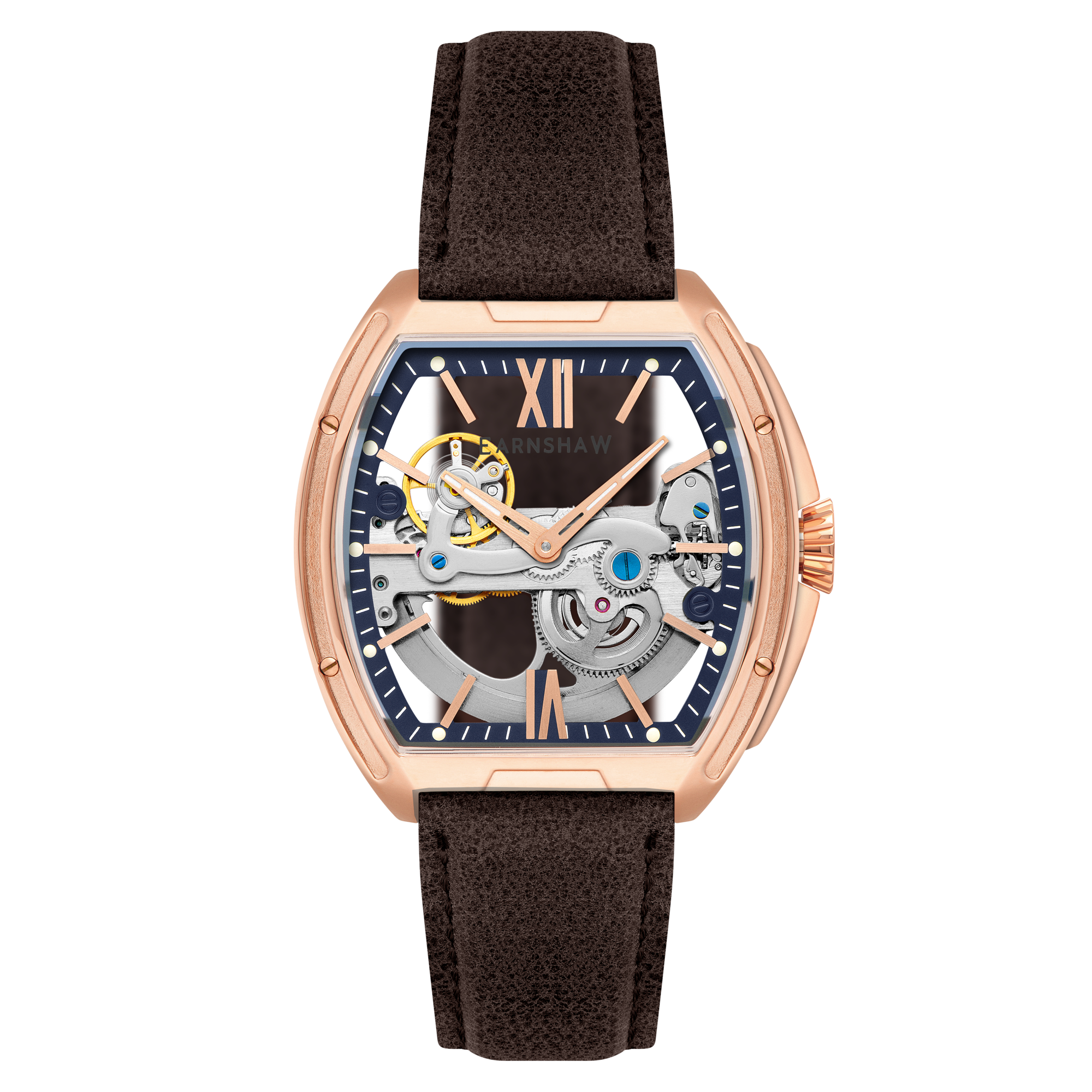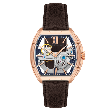 Sleek and striking, the Knightsbridge Automatic embraces openwork design with a fully transparent dial and exposed movement. Housed in a 45mm barrel-shaped case, this spectacular timepiece features Roman numeral accents and a double-curved lens. Pairing traditional elegance with contemporary flair, it redefines classic watchmaking.